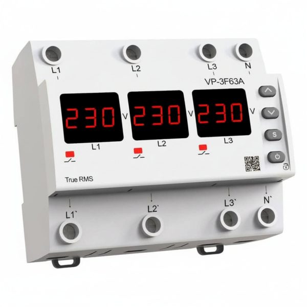Реле напруги 63A, VP-3F63A M6R (Трифазне /три однофазних) DIN DigiTop