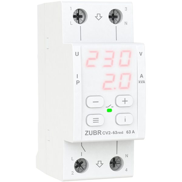 Реле наприги з контролем струму 63А, ZUBR CV2-63 red