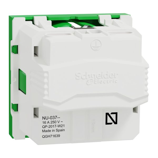 Розетка з з/к, зі шторками, 16А, самозажимні клеми, зелений