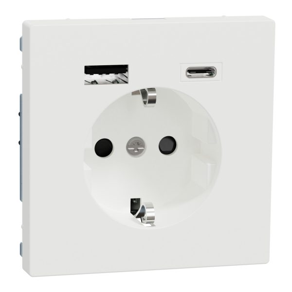 Розетка з заземленням та штепсель USB A+C 16А SysD матова біла