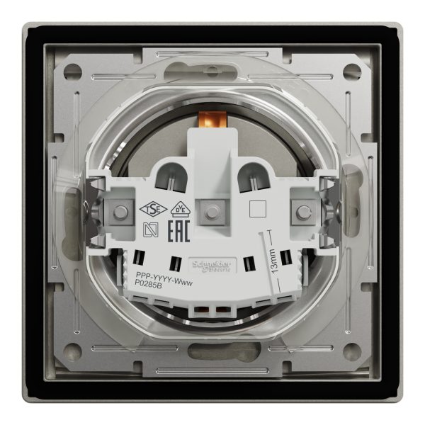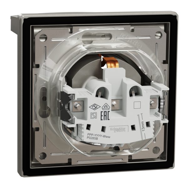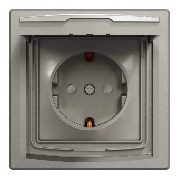 Розетка 1-а заземлювальним контактом, внутрішня з кришкою та шторками ІР44 “ASFORA Schneider” бронза (C3)