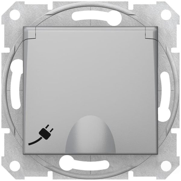 Розетка 1-а заземлювальним контактом, внутрішня з кришкою та шторками “SEDNA” алюміній