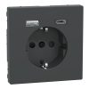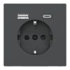 Розетка з заземленням зі шторками та USB тип A+C 16А SysD антрацит