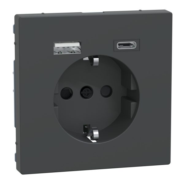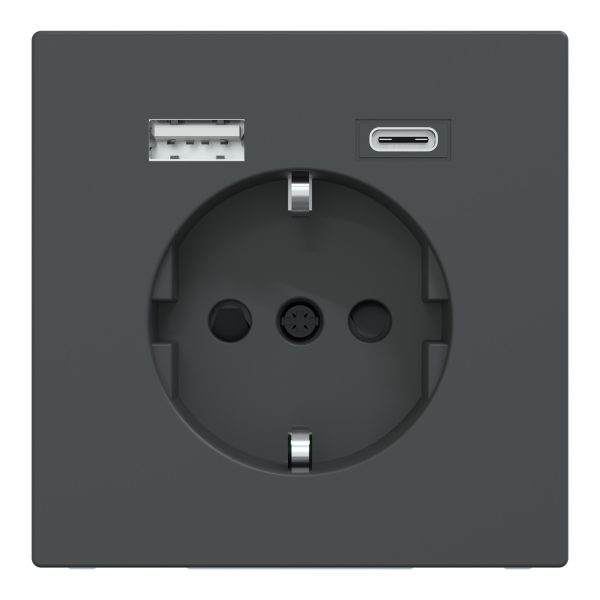 Розетка 1-а з заземлювальним контактом, зі шторками 16A + USB A+C антрацит “D-life”
