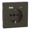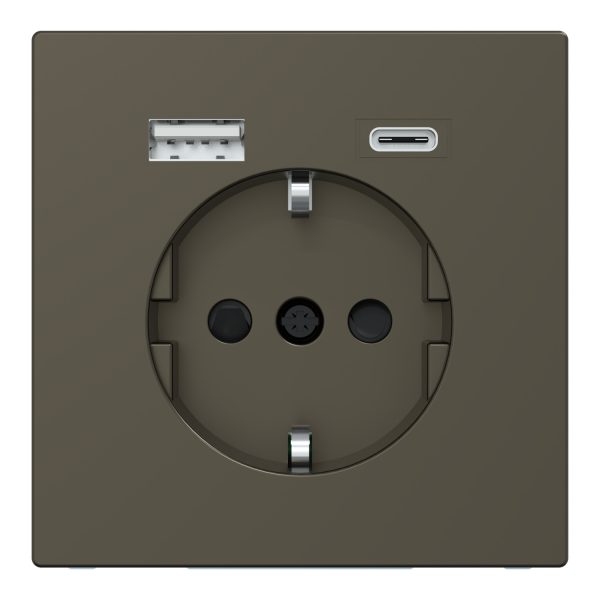 Розетка 1-а з заземлювальним контактом, зі шторками 16A + USB A+C “D-Life” мокко