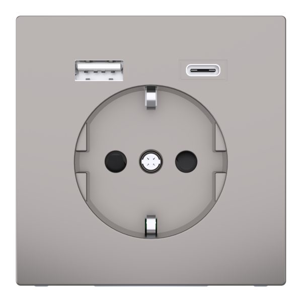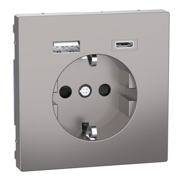 Розетка 1-а з заземлювальним контактом, зі шторками 16A + USB A+C “D-Life” нікель