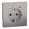 Розетка з заземленням зі шторками та USB тип A+C 16А SysD нікель