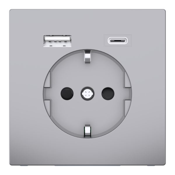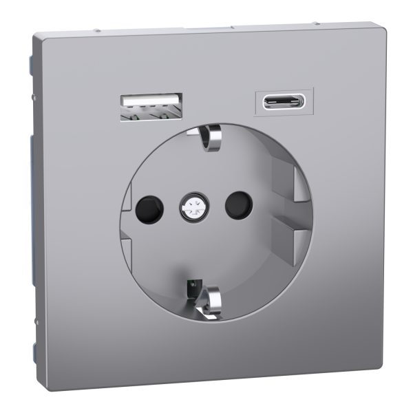 Розетка з заземленням зі шторками та USB тип A+C 16А SysD нержавіюча сталь