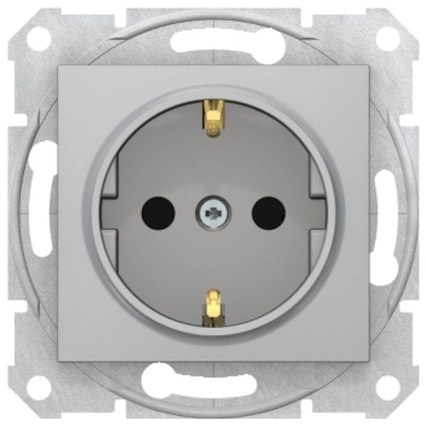 Розетка 1-а з заземлювальним контактом, зі шторками “SEDNA” алюміній