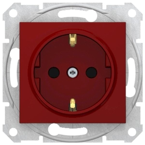 Розетка 1-а з заземлювальним контактом, зі шторками “SEDNA” червона