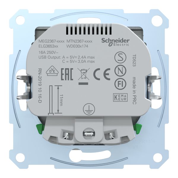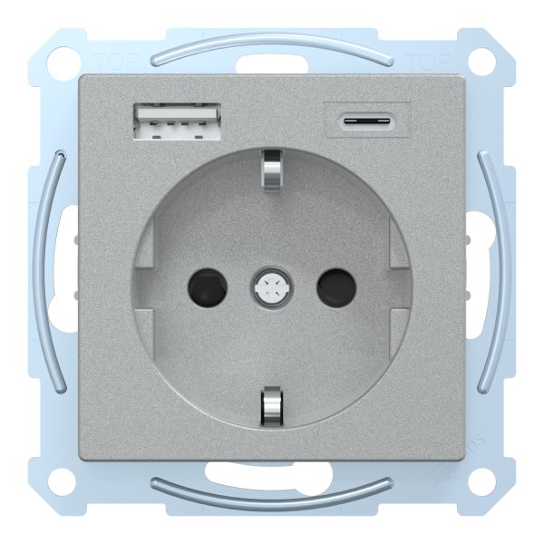 Розетка 1-а з заземлювальним контактом, внутрішня, з USB A+C 3A 16A “System M” Алюміній.