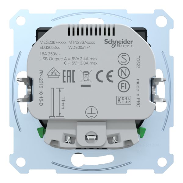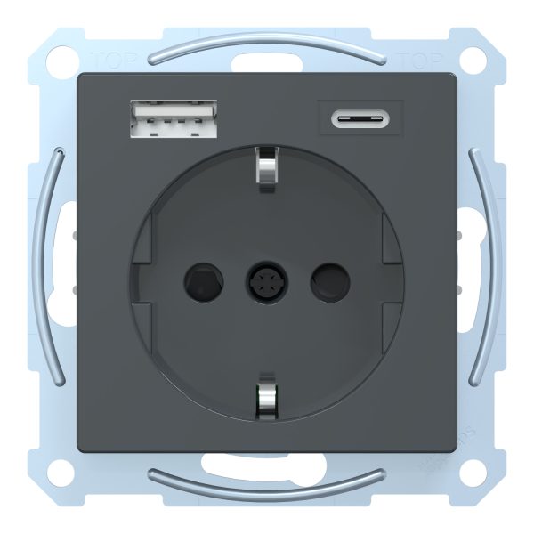 Розетка 1-а з заземлювальним контактом, внутрішня, з USB A+C 3A 16A “System M” антрацит