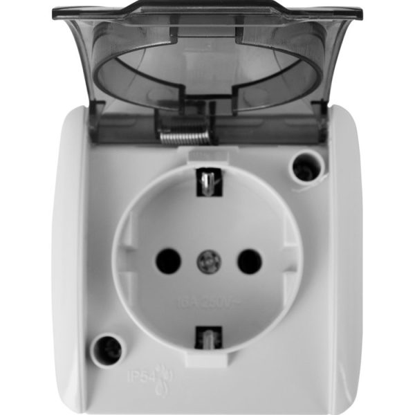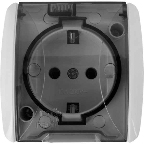 Розетка 1-а з заземлювальним контактом, зовнішня IP54 e.aqua.1231.gr прозора кришка