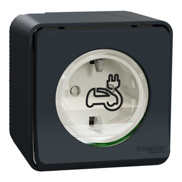 Розетка 1-а з заземлювальним контактом, зовнішня зі шторками IP55 для електромобіля “MUREVA S” чорна