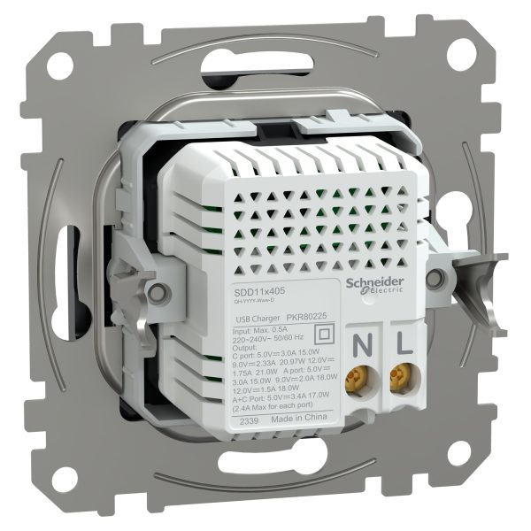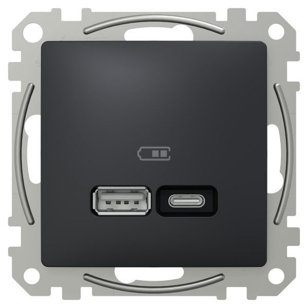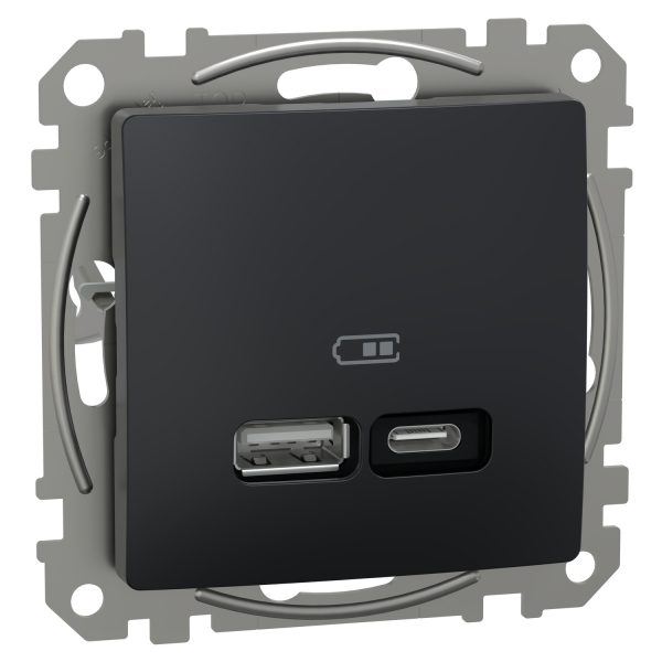 USB розетка, Sedna Design & Elements, тип A+C, 3 A, 21 Вт, чорний