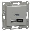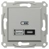 Розетка 2-а USB внутр. А+С, 21Вт “ASFORA” алюміній