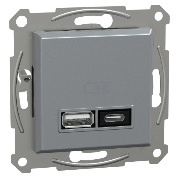 Скористайтеся рішенням для швидкого заряджання від Schneider Electric із зарядним пристроєм Asfora USB-A та USB-C PD PPS потужністю 21 Вт в кольорі сталі. Цей пристрій призначений для будь-якого внутрішнього середовища та живлення від електромережі. Розетка оснащена передовою технологією заряджання USB-C Power Delivery Programmable Power Supply (PD PPS), що підвищує продуктивність заряджання акумулятора. Вона розумно вибирає найбільшу потужність, яку може витримати пристрій, і підтримує всі новітні технології заряджання акумулятора. Вона також є зворотньо сумісною. USB розетка забезпечує оптимальне швидке заряджання смартфонів і пристроїв, таких як навушники, смартфони, планшети та інші. Вона має захист OVC III, від перегріву, короткого замикання, пускового струму та перевантаження. Максимальна потужність порту USB A 18 Вт, він призначений для зарядки невеликих електронних пристроїв, а також підтримує швидке заряджання та фірмові протоколи: 5 В постійного струму 3 А 15 Вт; 9 В постійного струму 2 А 18 Вт; 12 В постійного струму 1.5 А 18 Вт. Максимальна потужність порту USB C 21 Вт, він призначений для мобільних пристроїв, а також підтримує швидку зарядку PD та фірмові протоколи: 5 В постійного струму 3 А 15 Вт; 9 В постійного струму 2.33 А 21 Вт; 12 В постійного струму 1.75 А 21 Вт; 5 В – 12 В постійного струму 0.1 А – 3 А макс 21 Вт. Разом USB-порти по типу A та C мають максимальну потужність 17 Вт і максимальний струм 2,4 А на кожен порт. Зносостійкість USB-портів більше 10 000 циклів. Споживання в режимі очікування менше 0,05 Вт, вхідна напруга 220-240 В змінного струму, частота 50-60 Гц. Термін служби становить 30 000 годин з вихідною потужністю 21 Вт при 25 °C. Призначена для врізного монтажу. Розміри: (Ш) 70.8 мм х (В) 70.8 мм х (D) 42.5 мм. Вага – 117.04 г Ступінь захисту IP20 та IK02, робоча температура – від 0°C до 40°C. Постачається в коробці з прозорим вікном та євроотвором. Має європейську декларацію відповідності (EU), звіт CB. Відповідає стандартам EN-МЕК 62368-1, МЕК 61000-3-2, EN 61558-1, EN 61558-2-16, EN 50032, EN 55035, EN 50563, EcoDesign 2019/1782/EC, RoHS і REACH.