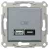 Розетка 2-а USB внутрішня. А+С, 21Вт “ASFORA” сталь