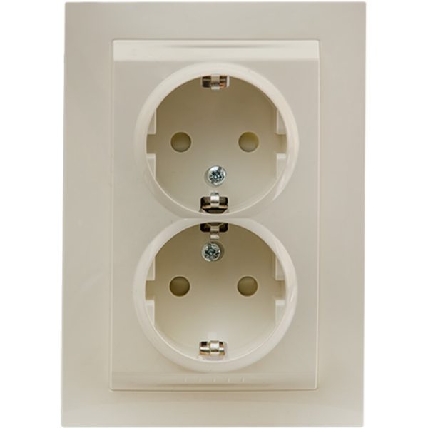 Розетка 2-а з заземлювальним контактом, внутрішня, зі шторками “UNICA” слонова кістка