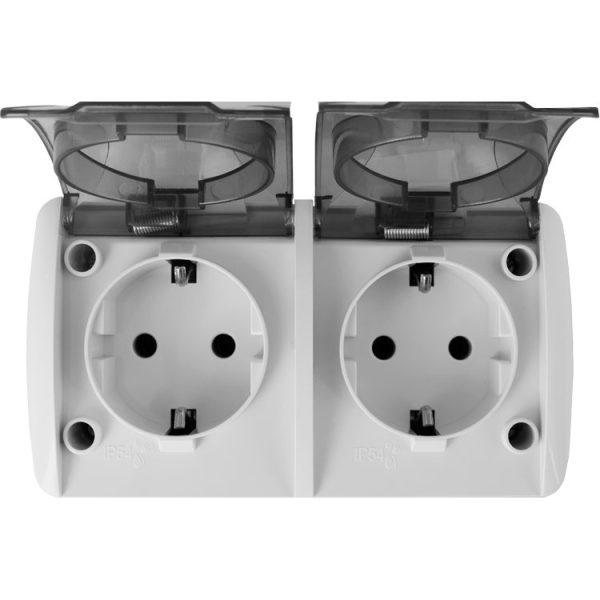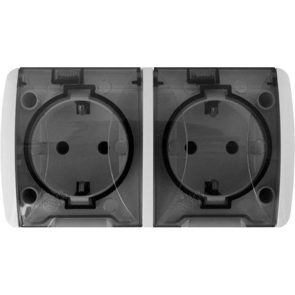 Розетка 2-а з заземлювальним контактом, зовнішня IP54 e.aqua.1232.gr прозора кришка