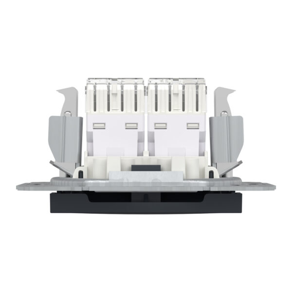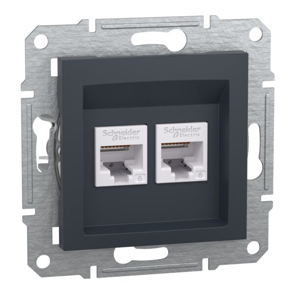 Розетка комп’ютерна подвійна RJ-45, категорія 6 UTP внутрішня “ASFORA” антрацит (C3)