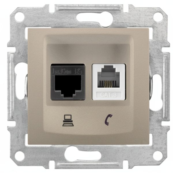 Розетка комп’ютерна та телефонна, внутрішня “SEDNA” титан