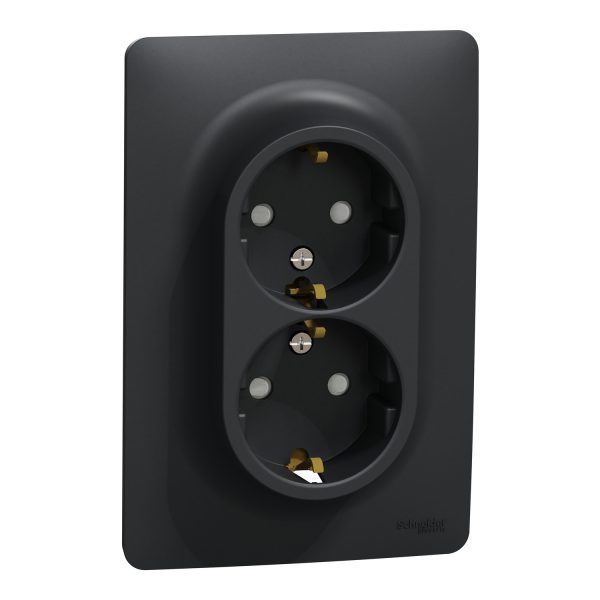 Розетка 2-а з заземлювальним контактом, внутрішня, “UNICA NEW” антрацит (C3)