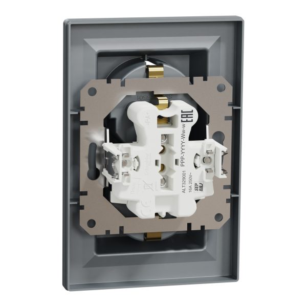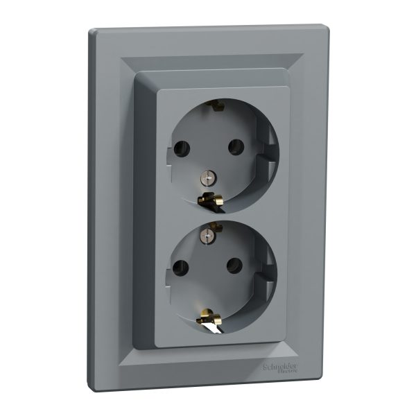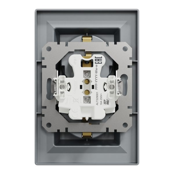 Розетка 2-а з заземлювальним контактом, внутрішня, “ASFORA” сталь (C2)