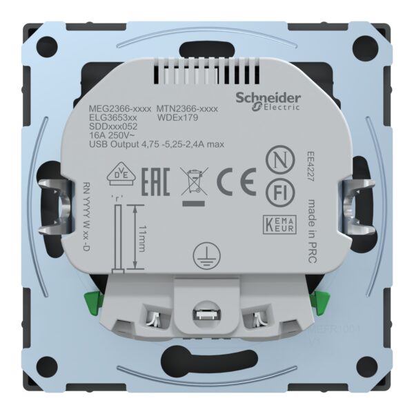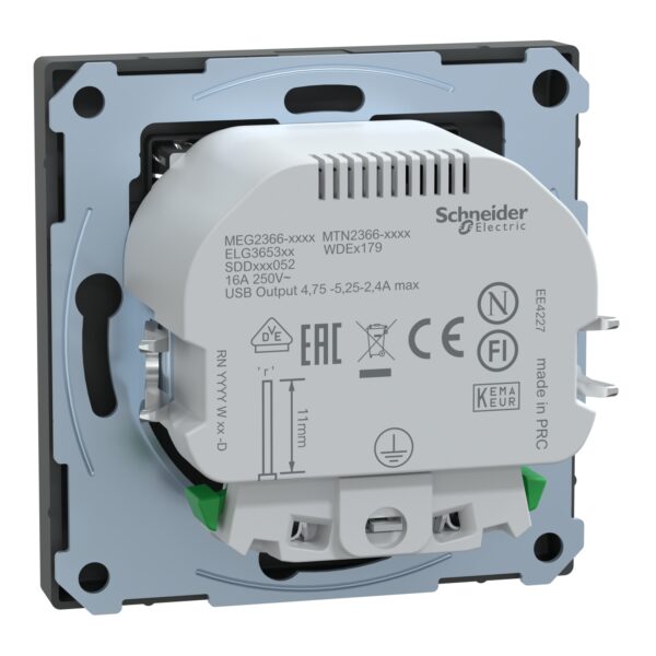 Розетка 1-а З/К внутр. 16A + 2 USB 2,4 А тип А+А антр”D-life” (знято з ви-ва)