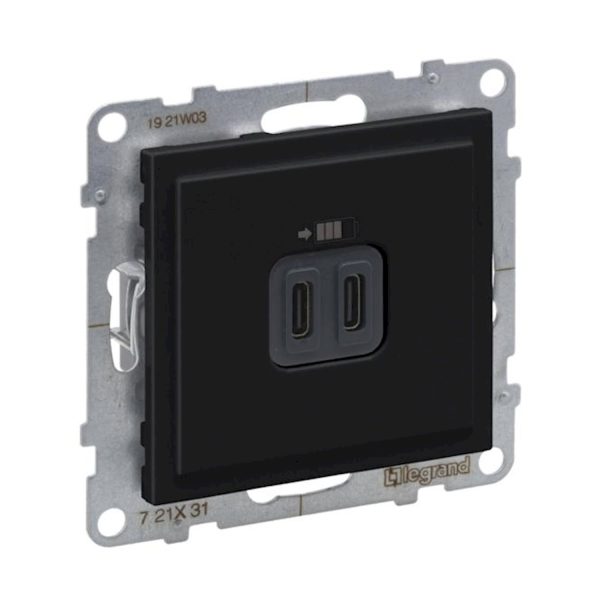 Розетка 2-а USB внутр. С+C 15 Вт 5В SUNO чорний