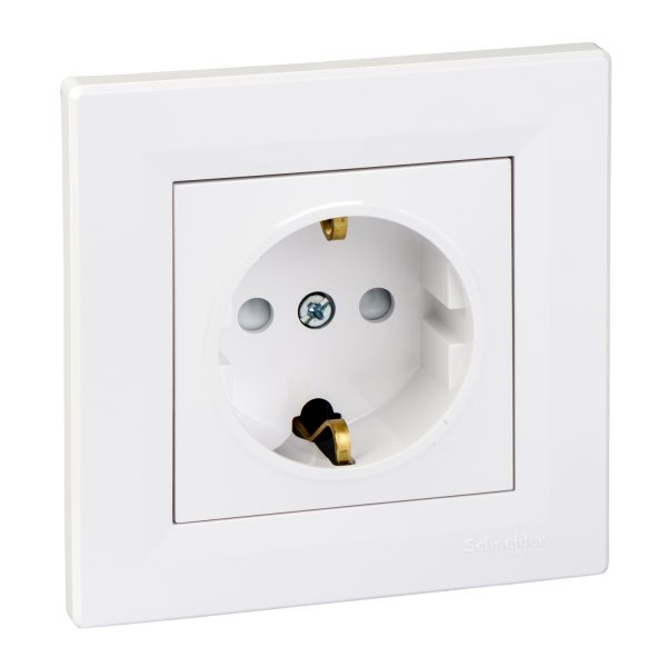 Asfora – single socket outlet with side earth – 16A shutters white 5 pack