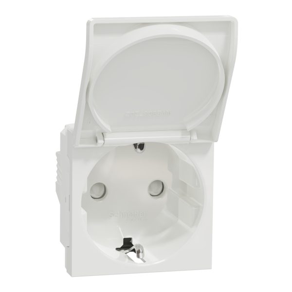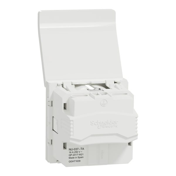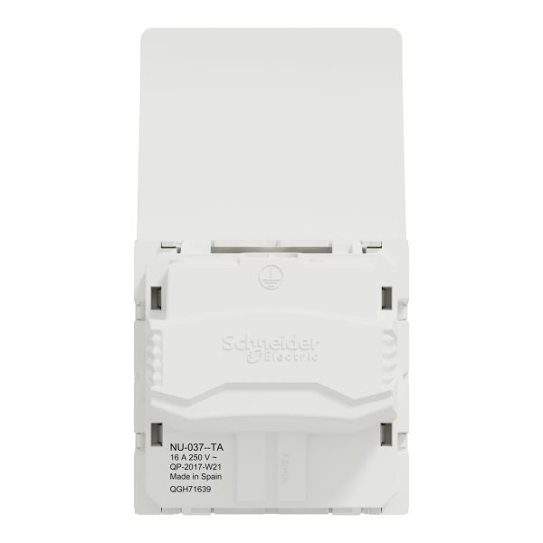 Розетка 1-а заземлювальним контактом, внутрішня з кришкою та шторками “UNICA NEW” біла (C1)
