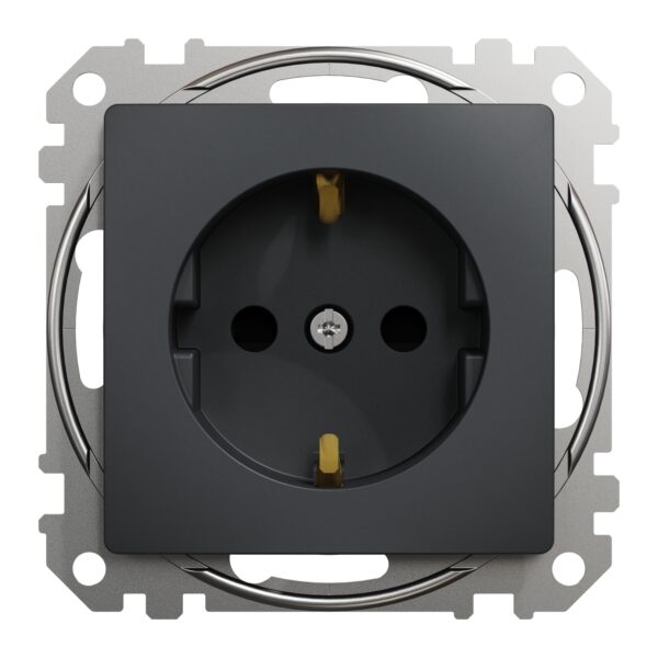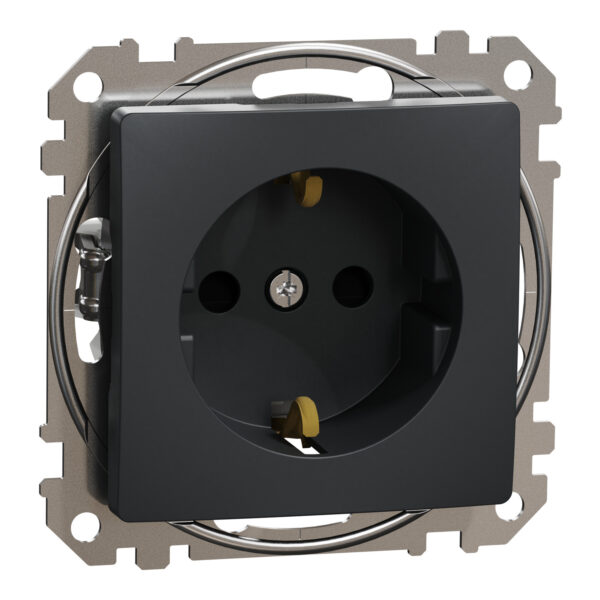Розетка 1-а з заземлювальним контактом, зі шторками “Sedna Design” Чорний