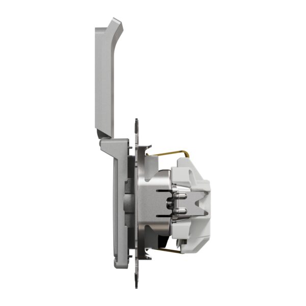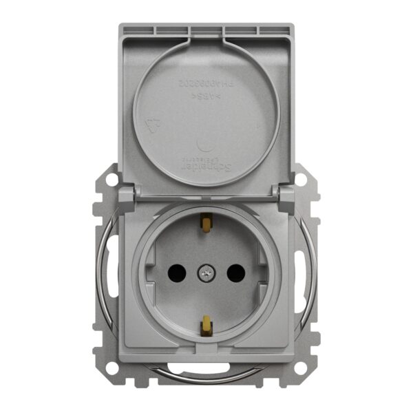Розетка 1-а з заземлювальним контактом, зі шторками та кришкою “Sedna Design” Алюміній
