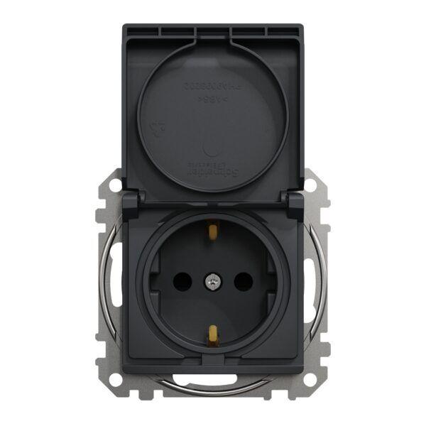 Розетка 1-а з заземлювальним контактом, зі шторками та кришкою “Sedna Design” Чорний