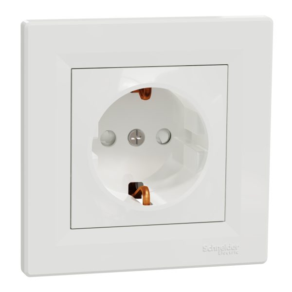 Розетка 1-а заземлювальним контактом, внутрішня зі шторками “ASFORA” бiла (C1)
