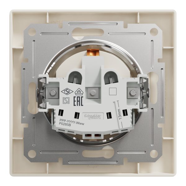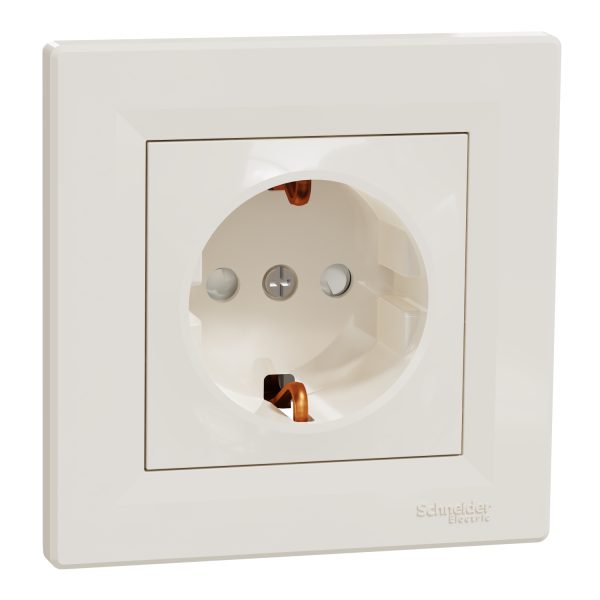 Розетка 1-а заземлювальним контактом, внутрішня зі шторками “ASFORA” слонова кістка (C1)