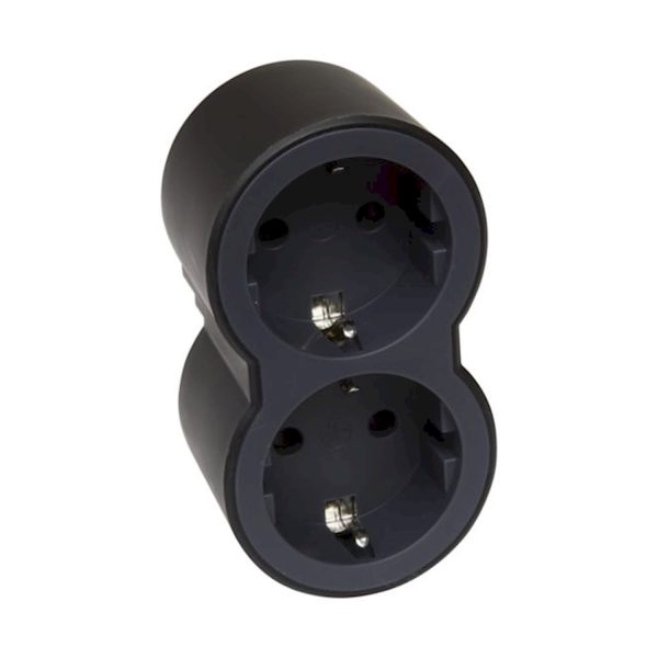 Розгалужувач на 2 фронтальні розетки 2P+PE чорний, Legrand