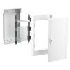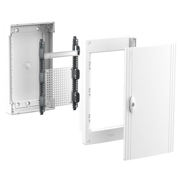 Мультимедійний щит навісний PrismaSeT XS. Зроблений з пластику, щит містить 1 ряд 13 модулів ( 18 мм ) і перфоровану решітчасту пластину. У ньому можна розмістити всі типи модульних і немодульних розподільних пристроїв. Щит призначений для встановлення всередині приміщень. Ступінь захисту IP40 ( при закритих дверях ). Комплектується суцільними дверима. Колір корпусу, пластрону та дверей білий (RAL 9003). Щит призначений для використання у житлових та промислових секторах. Щит розреблено для електриків, він ергономічний та гнучкий у встановленні. Кабелі можуть вводитися через верхню або нижню частину щита за допомогою зйомних пластин для введення кабелів. Можливо вводити кабелі, шини та кабельні короби. Оснащений 1 задньою панеллю, 1 універсальною решіткою та 1 DIN-рейкою. Решітка сумісна з серією LexCom Home, що дозволяє легко і швидко закріпити DIN-рейку або активні елементи, такі як ADSL, а також зручно організувати прокладку кабелів. З щитом комплектуються: 1 маркувальний набір, 1 захист для етикеток, 1 заглушка та деякі елементи кріплення кабелів. Клас електричної ізоляції II. Номінальна напруга ізоляції Ui 400 В. Категорія перенапруги II. Номінальний струм In 125А. Розсіювана потужність 58 Вт. Повністю відповідає стандартам МЄК 60670-1 і 24, 61439-1 і 3. Загальні розміри: (Ш) 302 мм x (В) 600 мм x (Г) 145 мм. Вага виробу 3,900 кг. Корпус, пластрон, задня частина та двері виготовлені з технопластика. Стійкість пластику до полумя та надмірної температури 750°C для корпусу, 850°C для задньої панелі та 650°C для дверей. Ступінь ударозахисту IK09 ( при закритих дверях ).