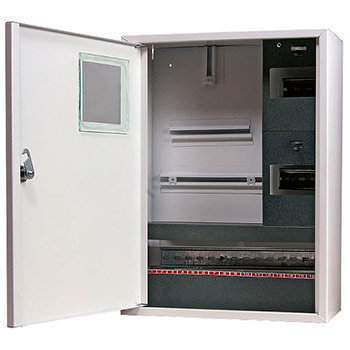 Шафа розподільна e.mbox.stand.n.f3.24.z під трифазний лічильник + 24 мод. навісний із замком застосовуються для встановлення 3-фазних лічильників обліку електричної енергії, монтажу модульного захисного та розподільчого обладнання, модульних пристроїв автоматики, пристроїв керування та сигналізації.