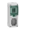 Водонепроникний універсальний щит Mureva. Розмір щита для втановлення модульного обладнання 1 ряд з 4 модулів, має прозору кришку. Призначений для встановлення промислових розеток. Розміри щита: (Ш) 98 мм x (В) 248 мм x (Г) 98,5 мм. Розміри отворів 65 мм х 85 мм. Номінальний струм 63А, згідно МЕК 60439-1, ізоляція класу 2. Ступінь захисту IP65. Ступінь ударозахисту IK09. Колір світло-сірий (RAL 7035). Робоча температура від -25°C до 40°C. Щит без встановленого обладнання відповідає стандарту МЕК 60670. Щит з обладнанням відповідає стандарту МЕК 60493-3. Щит призначений для внутрішнього або зовнішнього встановлення.
