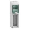 Водонепроникний навісний щит Mureva для встановлення розеток. У ньому можна розмістити всі типи модульних розподільчих пристроїв. Містить зону для встановлення промислових або побутових розеток, кнопок або світлових індикаторів. Щит призначений для внутрішнього або зовнішнього встановлення. У комплект поставки входять прозорі зелені двері для зони встановлення модульного обладнання. Колір світло-сірий (RAL 7035). Кабелі вводяться у верхній частині щита через 3 попередньо підготовлених місця для підведення. Він оснащений задньою пластиною та передньою кришкою з виїмкою. Набір для маркування також постачається в комплекті з виробом. Клас електроізоляції II (подвійна ізоляція). Категорія перенапруги II класу. Розсіювана потужність становить 12 Вт. Номінальний струм In до 63А. Цей виріб відповідає стандартам МЕК 61439-1 і 3, МЕК 60670-1 і 24. Розміри: (Ш) 138 мм x (В) 460 мм x (Г) 160 мм. Вага виробу 1,2 кг. Матеріал являє собою самозатухаючий полімерний матеріал. Його стійкість до полумя та надмірної температури становить 650°C згідно з МЕК 60695-2-1. Він стійкий до ультрафіолету. Ступінь ударозахисту IK09. Робоча температура від -25 до 40 °C.