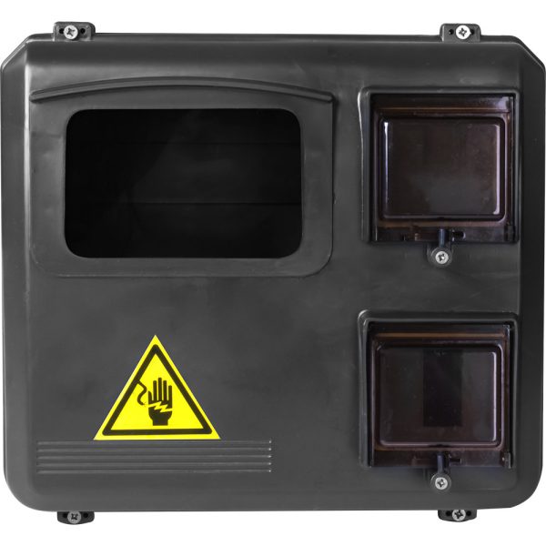 Шафа пластикова КДЕ-3 new під одно-трифазний електронний лічильник, навісна для електронного 1-3х фазного лічильника електроенергії змінного струму напругою 220В (380В), частотою 50 Гц, призначена для зовнішньої установки. Передбачені місця для розміщення автоматичних вимикачів: 2 вікна по 3 модулі (кожне вікно пломбується окремо). Корпус пломбується для захисту від несанкціонованого доступу.