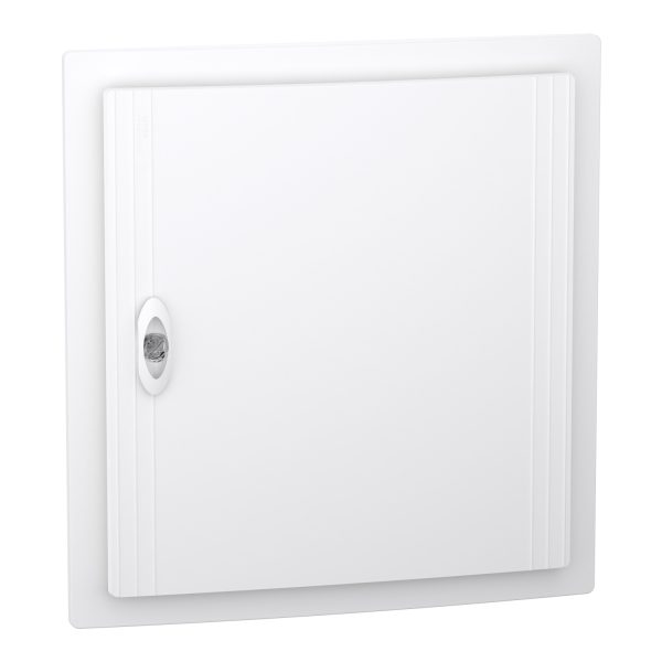 Розподільчий щит врізний PrismaSeT XS. Зроблений з пластику, щит містить 2 ряди по 18 модулів ( 18мм ). У щиті можна розмістити всі типи модульних розподільних пристроїв. Щит призначений для встановлення всередині приміщень. Ступінь захисту IP40 ( при закритих дверях ). Комплектується суцільними дверима. Колір корпусу, пластрону і дверей білий (RAL 9003). Щит призначений для використання у житлових та промислових секторах. Щит розреблено для електриків, він ергономічний та гнучкий у встановленні. Кабелі можуть вводитися через верхню або нижню частину щита за допомогою зйомних пластин для введення кабелів. Можливо вводити кабелі та шини. Оснащений 1 задньою панеллю та 2 DIN-рейками. Рейки зйомні, що полегшує прокладання кабелів та технічне обслуговування. Комплектується з 1 клемним блоком заземлення та 1 клемним блоком нейтралі. Клемний блок заземлення забезпечує 22 виходи (11×16 мм² + 11×10 мм²). Клемний блок нейтралі має 16 виходів (2x (4×16мм² + 4×10мм²)). З щитом комплектуються: 2 маркувальні набори, 2 захисні пластини, 1 заглушка та елементи кріплення кабелів. Клас електричної ізоляції II. Номінальна напруга ізоляції Ui 400 В. Категорія перенапруги II. Номінальний струм In 90А. Розсіювана потужність 62 Вт. Повністю відповідає стандартам МЄК 60670-1 і 24, 61439-1 і 3. Загальні розміри: (Ш) 486 мм x (В) 510 мм x (Г) 129 мм. Вага виробу 4,280 кг.