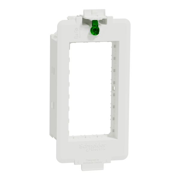 Супорт Schneider Electric Unica System+ INS52150 білого кольору, шириною 2 модулі по 45 мм. Матеріал виробництва супорта – пластик. Супорт на 2 модулі підходить до підлогового лючка розміром M та L. Супорт має вбудований замок для його фіксації в лючку. Розміри: ширина 45 мм, висота 65 мм, довжина 150 мм. Кріпиться за допомогою strain relief. Продаються по 5 шт у комплекті. Unica System+ це серія інноваційних та стильних рішень для організації робочих місць, яка легко встановлюється. Серія, що дозволяє улаштувати комфортне робоче місце разом зі звичайними та USB розетками.