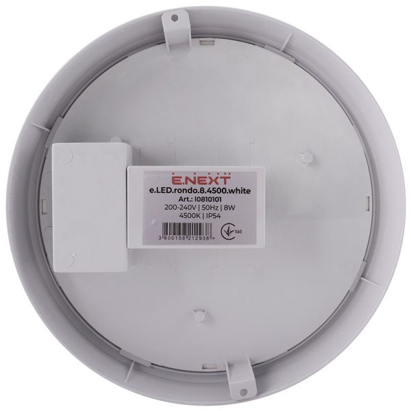 Світильник світлодіодний вологозахищений e.LED.rondo.8.4500.white, 8Вт, 4500К, IP54, білий