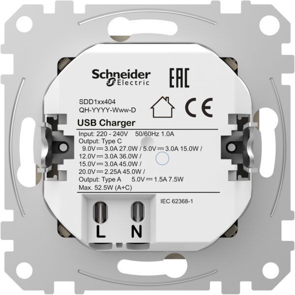 Розетка 1-а USB внутрішня A+C 3A 45Вт “Sedna Design” Алюміній