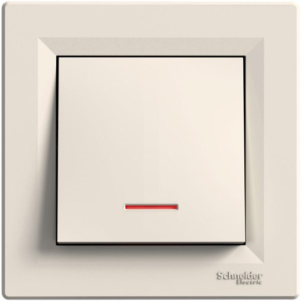 Вимикач 1-клавішний. внутрішній. прохідний з підсвіткою. “ASFORA Schneider” слонова кістка,