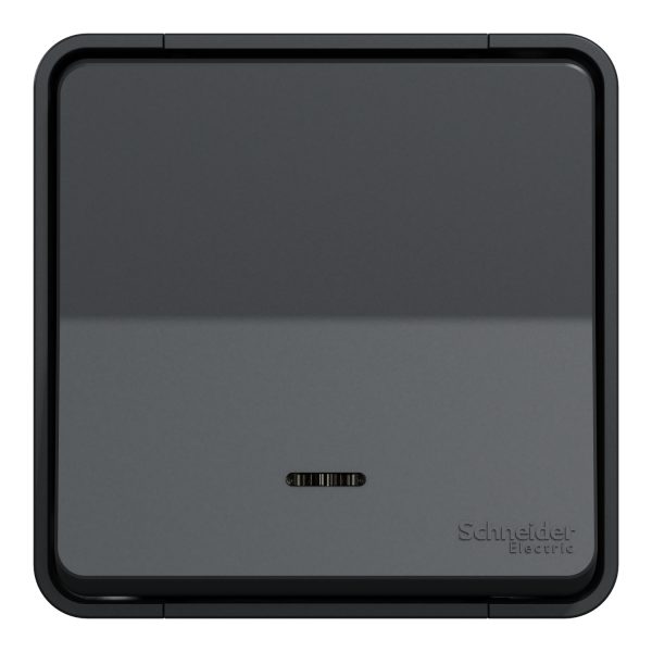Вимикач 1-клавішний. зовнішній прохідний з підсвіткою IP55 “MUREVA S” чорний (10А) (C3)