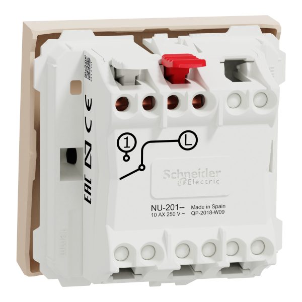 Вимикач 1-клавішний внутрішній. 2-модульний. “UNICA NEW” слонова кістка, (C2)